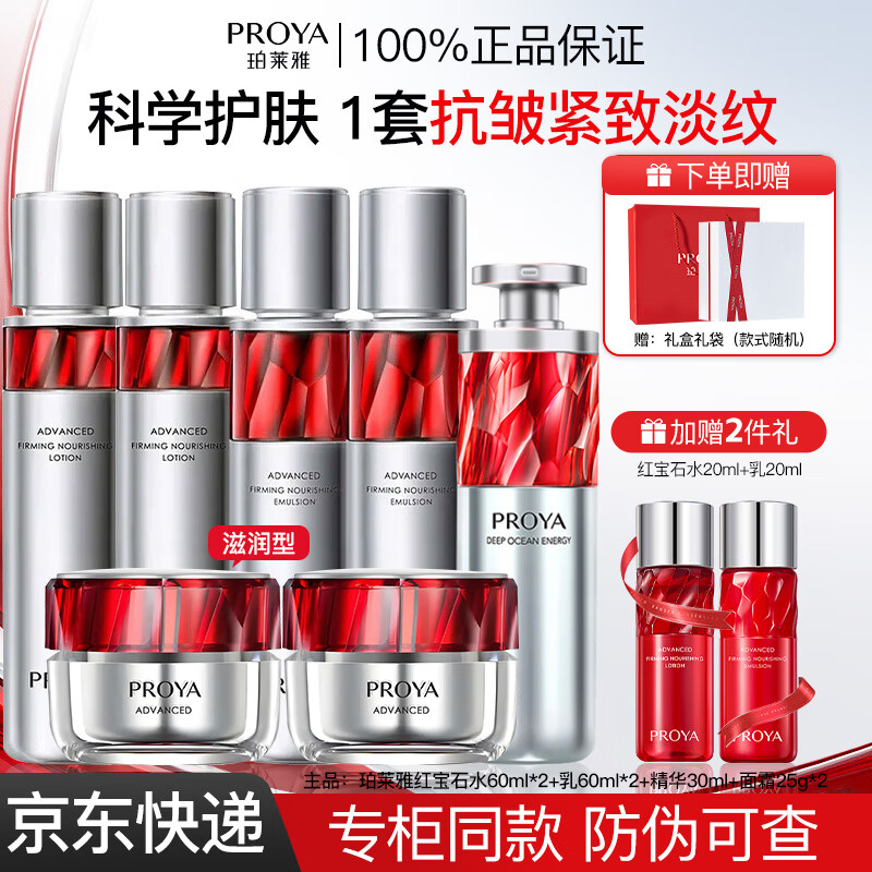 包邮 珀莱雅(PROYA)红宝石水乳套装护肤用品双抗精华补水保湿紧致抗皱礼盒送女友老婆 【礼盒+礼袋六件套】洁面+水+乳+滋润霜+精华+眼霜